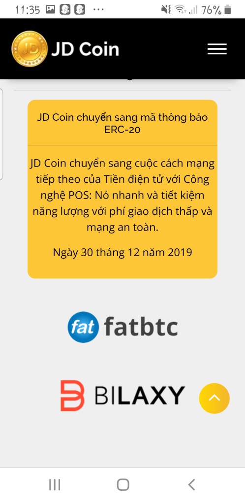 JDcoin đã list lên 3 sàn Top Thế Giới vào ngày 15/11 /2019 Bilaxy – Fatbtc và Coinsbit JDcoin đã được Niêm yết trên sàn COINMARKETCAP coinmarketc.com Ngày 17/1/2020 JD COIN lên thêm sàn Folgory để giao dịch !!!