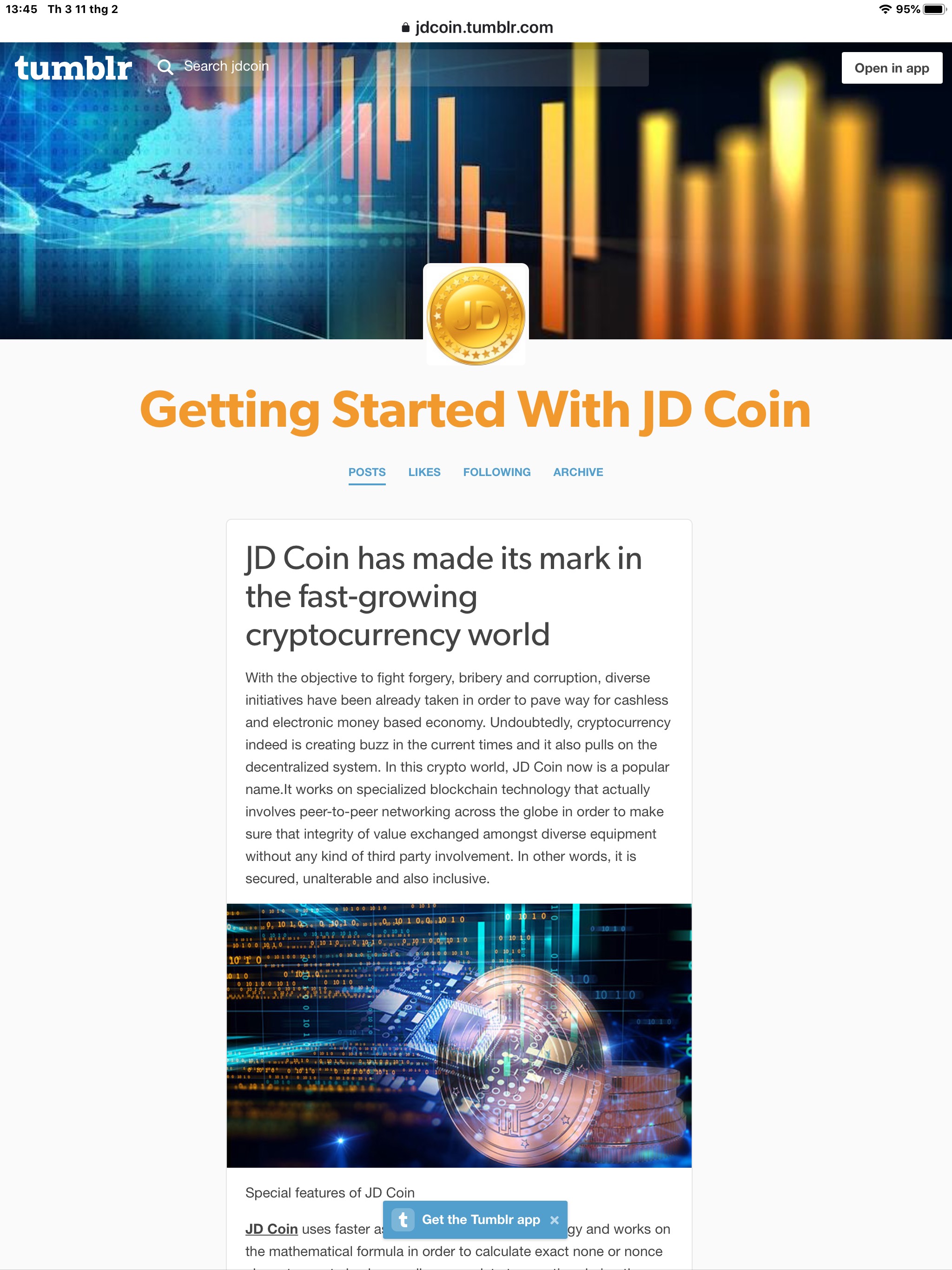 JD coin bùng nổ thị trường trong năm 2020 Các nhà đầu tư thân mến, Sau đây tôi xin điểm qua đồng JD coin là gì, Và tại sao phải nắm bắt cơ hội, Đồng jD coin ra đời là đồng tiền điện tử thế giới đầu tiên được bộ nội vụ tài chính FinCen Mỹ cấp phép đầy đủ dưới dạng ngân hàng điện tử Và đây là lý do chúng ta càng nắm giữ càng nhiều càng tốt 1) JD coin là loại tiền điện tử một xu thế tất yếu của thế giới trên nền tảng công nghệ bảo mật tuyệt đối Blockchain Mã số thuế của đồng JD 31000126410666 2) Chúng ta là những người đi đầu trong giai đoạn giá vẫn rẽ như mua bó rau ngoài chợ 3) lãnh đạo của tập đoàn là NGÀI Jhonbanga Là chủ tịch tập đoàn US BUSINESS WORLD LLC Tập đoàn LLC được thành lập 2010 hệ sinh thái lên đến hơn 500 ngành nghề bao gồm thương mại điện tử lập trình trang website lớn nhất thế giới, thương mại giáo dục sức khỏe khách sạn nghĩ dưỡng du lịch vé máy bay Công nghệ thông tin 4)/Tập đoàn usbwllc nasa vũ trụ mỹ là một tổ chức tập thể của thế giới JD coin đoạt giải thưởng công nghệ blockchain Năm 2019 giải thưởng cao quý Thế giới được tổ chức tại Kula lumpur 5)Những Sự kiện khẳng định vị thế đẳng cấp thế giới diễn ra đầu 2020 của JDcoin